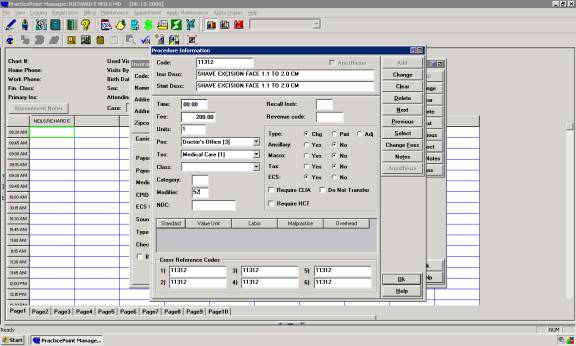 4) Check the Cross Reference Code field on the bottom of the screen.� If there is more than a 5 character CPT code in this field, it will cause rejections.� The internal code at the top of the screen can remain with up to 10 characters because this is not the code sent to the insurance carrier.� If you have an �automatic� modifier attached to this code in the cross reference area, remove the modifier and place it in the �Modifier� box above.